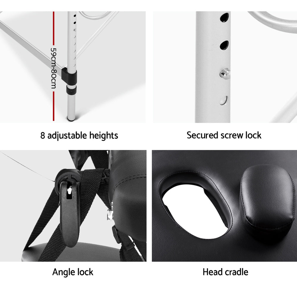 Zenses Massage Table 70cm Portable 3 Fold Aluminium Beauty Bed Black