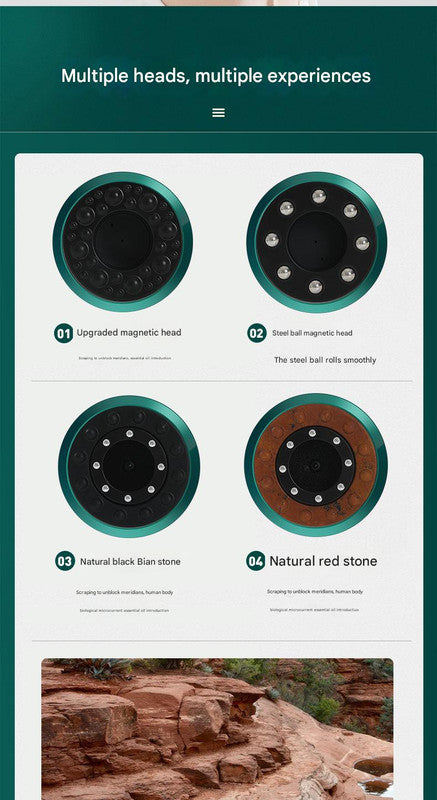 - Functions: Cupping, Scraping (Gua Sha), Massage, Magnetic Therapy, Red Light Therapy