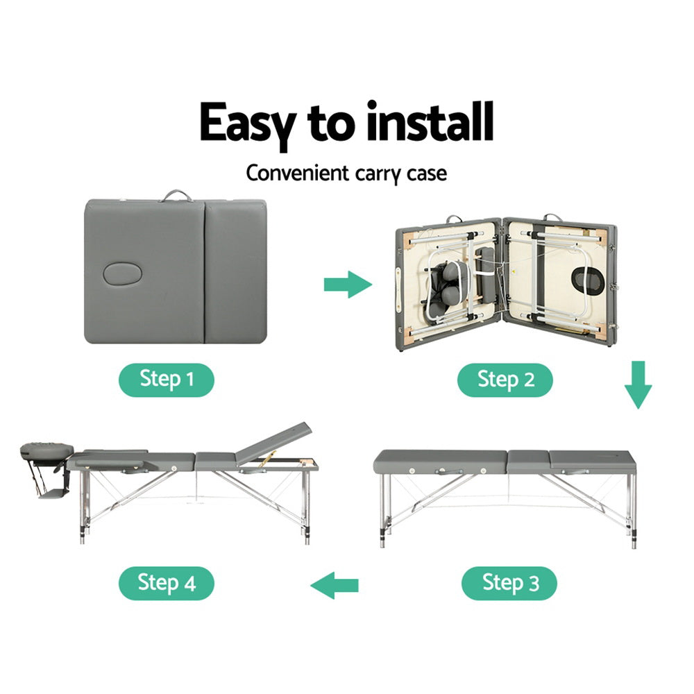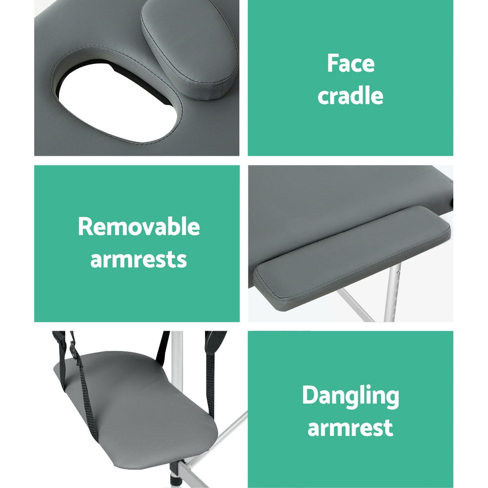 Zenses Massage Table 75cm Portable 3 Fold Aluminium Beauty Bed Grey